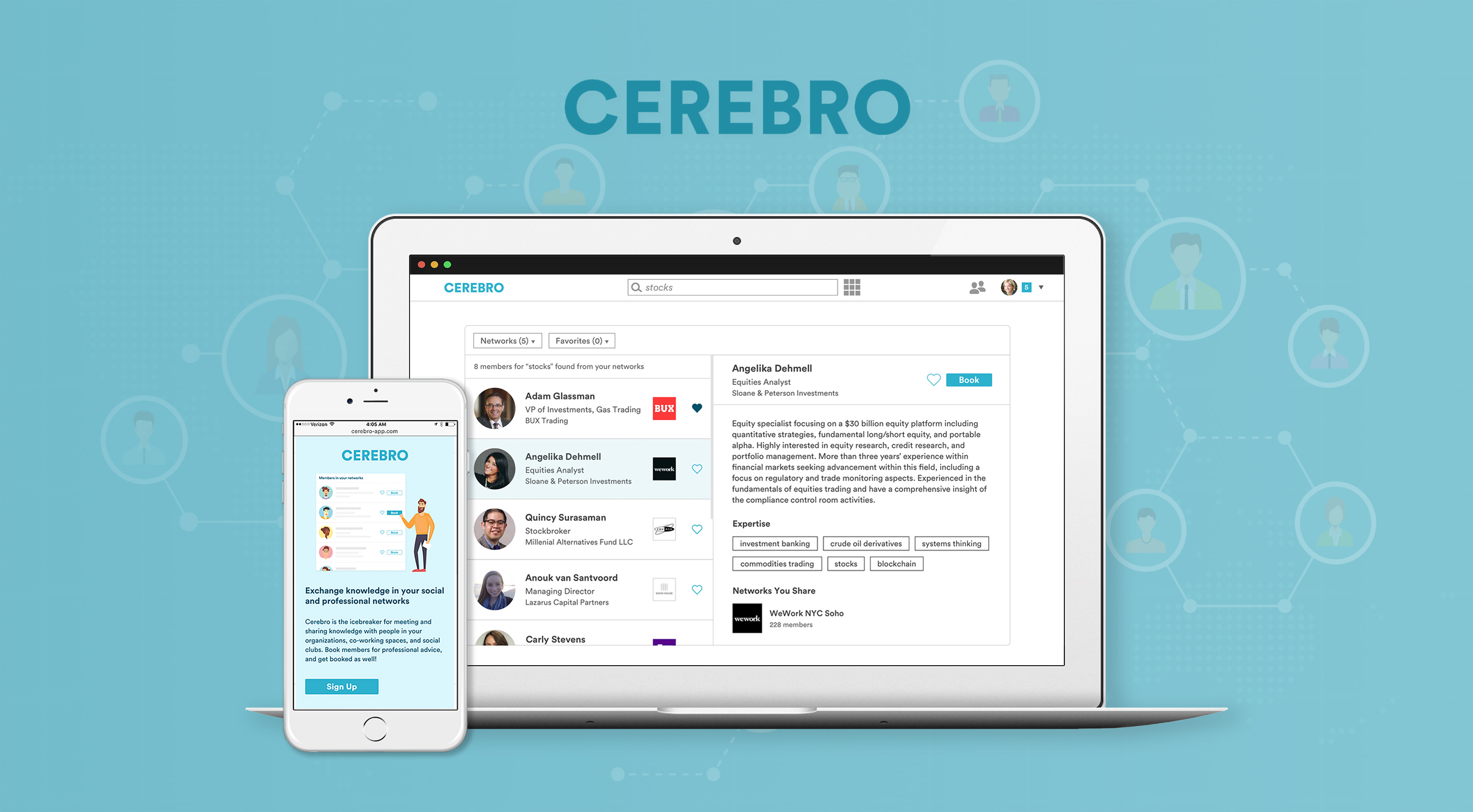 Do you work in a co-working space or belong to organizations? Leverage the knowledge and expertise of your affiliations! Cerebro allows you to easily identify, book, connect, and have focused conversations with someone in your extended network.